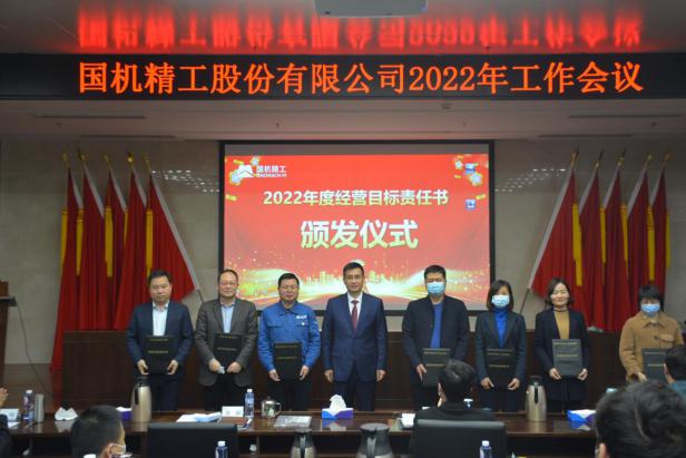 会上,朱峰向蒋蔚颁发了公司2022年“经营目标责任书”,蒋蔚代表公司向各下属企业负责人颁发了2022年“经营目标责任书”。