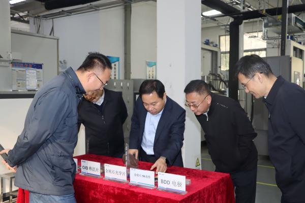 洪蛟一行参观三磨所展厅、高性能工具全国重点实验室,详细了解企业发展历程和开云中国情况,深入功能金刚石实验车间,调研企业生产经营情况。